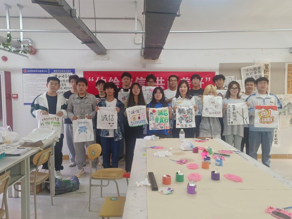 本次活动有诚信标语设计和帆布包DIY绘画设计。诚信标语设计以设计诚信标语为主要内容,同学们写出代表诚信的标语,表达诚信做人、诚信做事的意愿;在“约绘诚信,共画美好”为主题的帆布包DIY绘画设计活动中,同学们发挥想象力和创造力在帆布包上绘制与诚信相关的图案,在活动中认识诚信的重要性,树立诚信品格。参与活动的同学纷纷表示,诚信是我们坚守的底线,是共同的宝贵财富,无论是在学习还是生活中,都要诚实守信,不得为一己私利而违背诚信原则,在生活中做到言行一致,树立正确的道德观念,成为有道德、有担当、有责任感的文明大学生。