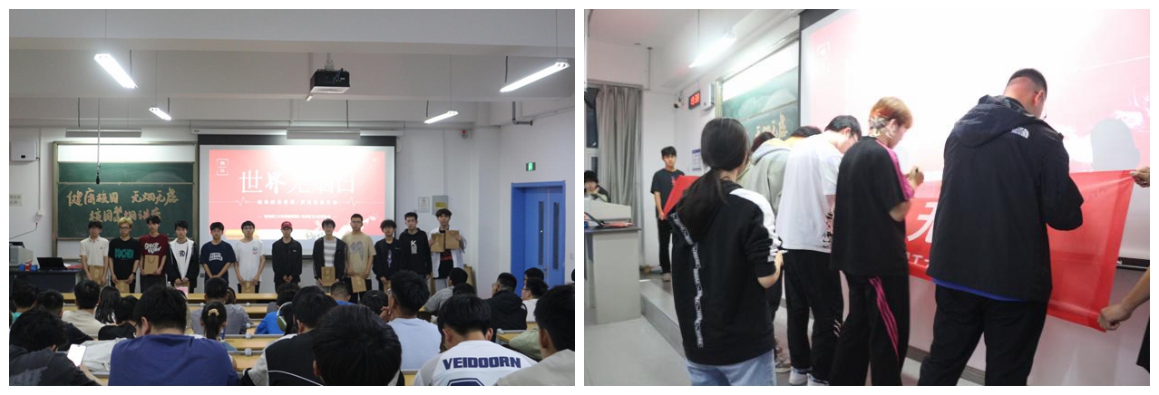 活动现场,禁烟宣传氛围浓厚。精心准备的禁烟展板、活动横幅和宣传海报,向同学们普及禁烟知识,宣传烟草对人体的巨大危害及戒烟方法。在讲座中,校园与物业管理服务中心王磊向同学们生动讲解了世界无烟日的由来和意义,校学生会杨珂琦为同学们介绍了烟草的危害及控烟戒烟的方式方法。在知识竞答环节,还设置了小奖品,同学们在竞答中收获知识和快乐,提高参与感与荣誉感。