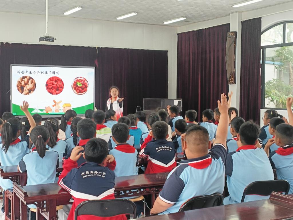 在大路小学,服务团以“弘扬中医药文化倡导健康新生活”为主题开展中医科普,志愿者向同学们介绍了有关于中药材的相关知识,集中讲解了几种独特的中药材,贴近生活的中医药食物,同学们兴趣盎然,热情高涨,积极参与到互动中来。在互动环节中,志愿者现场展示了中药的香囊制作手法,引导同学们亲自动手制作。药香缕缕,笑声盈盈,同学们深切感受到了中医药文化的博大精深和独特魅力。