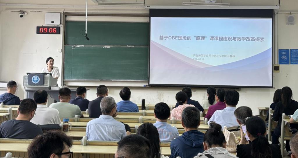为进一步推进混合式教学改革,更好地加强思政课程建设质量、拓宽思政课发展深度,6月19日,马克思主义学院邀请齐鲁师范学院马克思主义学院马克思主义基本原理课教研室主任孙静静副教授作专题讲座,讲座主题为“基于OBE理念的‘原理’课程建设与教学改革探索”。本次讲座由马克思主义学院院长助理石峰主持,学院全体教师参加。