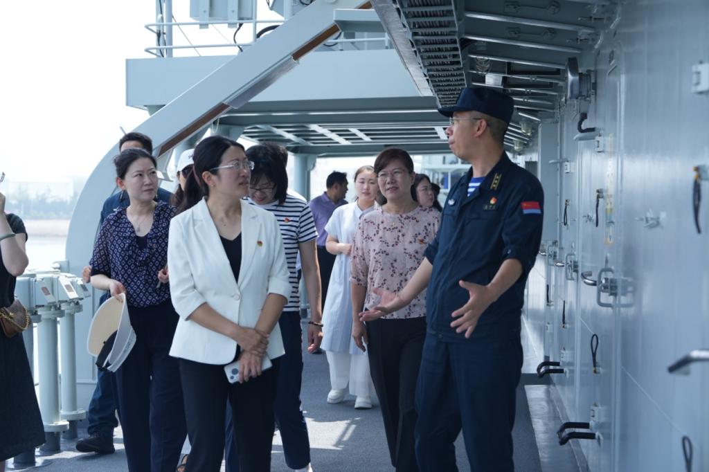 军舰是流动的国土,补给舰是海上流动的“加油站”,在远洋航行过程中承担重要使命。作为我国自主研发的903A型综合远洋补给舰,东平湖舰的凛然威严予以师生党员壮美磅礴的视觉观感。本次活动是艺术与设计学院师生党员深化军事主题文化教育的一次积极探索,通过此次参观交流活动,有效提升了师生党员对国防建设发展的认识,今后将加强国防教育为示范引领,做好学生的引路人。(撰稿:王雅鸣;审核:吕楠)