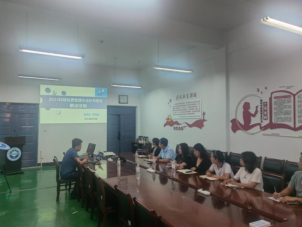 于利俊分别从文件背景、目的意义、主要内容等进行讲解,对重要条款进行重点说明,讲解结束后,于利俊与师生就政策执行、经费报销等有关问题进行了沟通交流,解答大家提出的问题,听取了师生的意见建议。