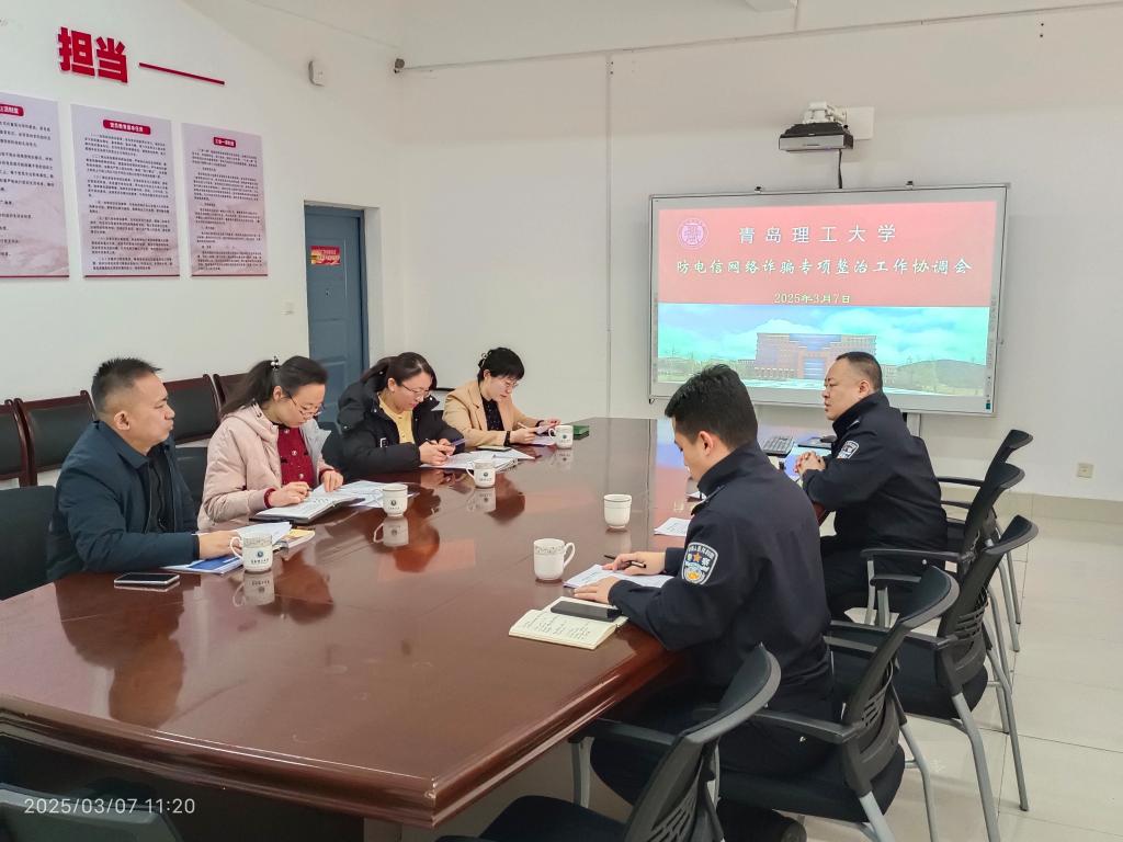 为有效遏制电信网络诈骗案件发生,切实保障师生财产安全,安全管理处于3月7日组织召开防电信网络诈骗专项整治工作协调会。薛家岛派出所所长兰雷刚、指导员唐迪应邀参会,宣传部、学生工作处、团委、安全管理处等相关部门负责人出席本次会议,共同研讨校园反诈工作实施方案,筑牢安全防线。