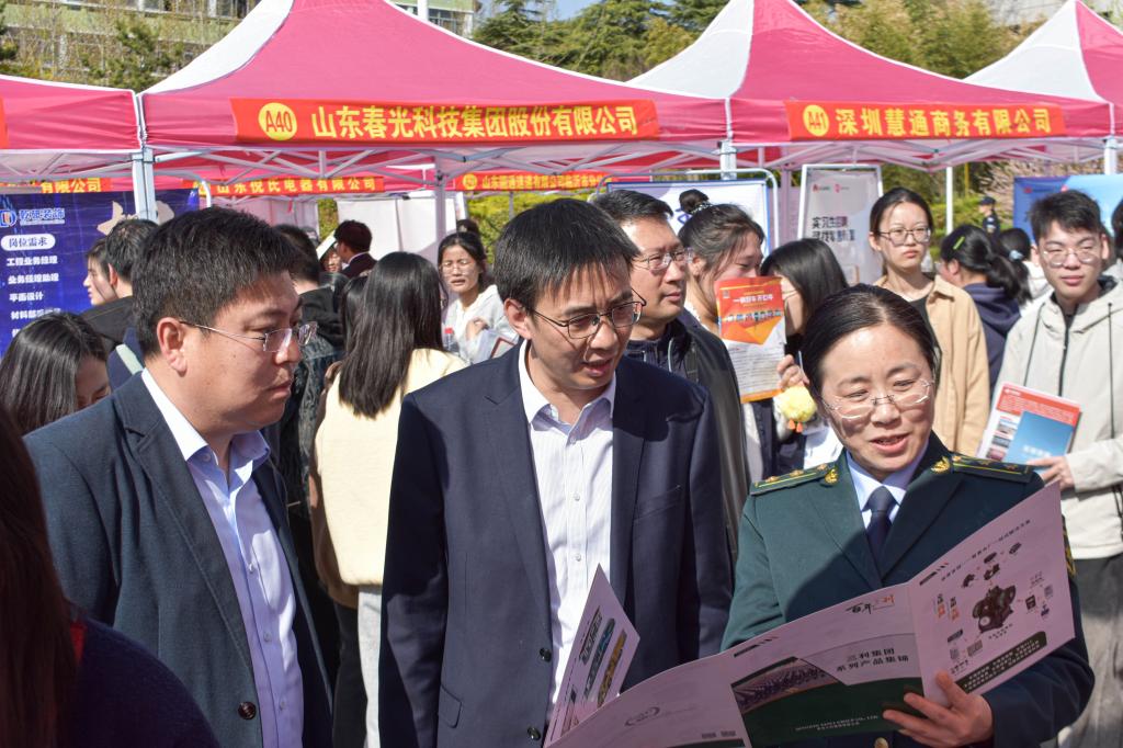 为全力促进毕业生高质量充分就业,4月2日,临沂校区在图书馆广场举办“春启新程 职引未来”2025届毕业生春季校园双选会。临沂校区党委副书记何云峰,以及管理办公室、各系(部)负责同志参加活动。