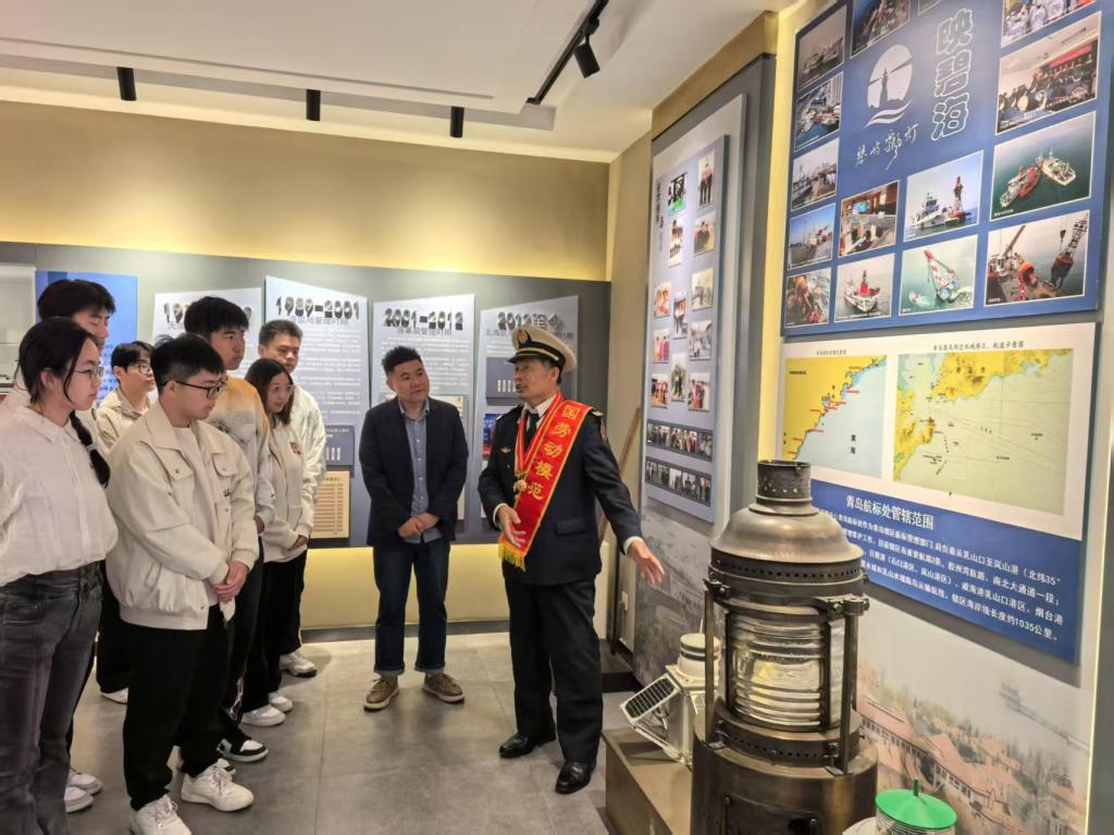 在灯塔旁的青岛航标展馆,泛黄的《劳模诗集》与抗美援朝老兵照片构成特殊展陈。王炳交讲述重走长征路、探访冰雕连的见闻时强调:“五四精神不仅是历史回响,更是新时代青年攻坚克难的密码。”当他开启自己动手研究维护的百年雾号,震撼人心的“海牛声”响起,那是劳模精神、五四精神引领青年奋进的交响。建筑与城乡规划学院党委副书记王中帅书记表示,这种“行走的思政课”已纳入学院“青心筑梦”实践育人体系,未来将结合历史街区改造、乡村振兴等项目,打造更多沉浸式育人场景。