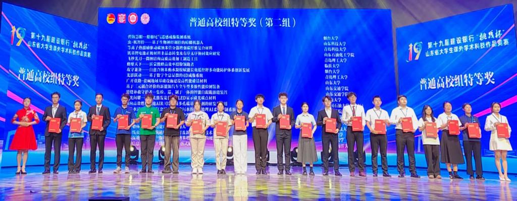 本届竞赛以“齐鲁青韵,创领未来”为主题,普通高校组作品涵盖自然科学类学术论文、哲学社会科学类社会调查报告、科技发明制作三大类别,全省62所高校共选拔出258支参赛队伍入围终审决赛,最终评选97项特等奖。365完美7个参赛项目进入终审决赛,经过现场质询、问辩评审等环节的激烈角逐,项目《飞秒光刀-微纳结构高质高效加工制造工具》(推荐单位:机械与汽车工程学院,团队负责人:马遥飞,指导教师:孙树峰,李忠晓,王津)、《光影跃动——基于数字全息显微的4D成像系统》(推荐单位:理学院,团队负责人:王媛媛,指导教师:吴育民,张佳琳,初鹏程)获得特等奖。《一种用于化工罐体防护的抗爆阻燃防腐聚脲涂层》(推荐单位:土木工程学院,团队负责人:邱锡舜,指导教师:马明亮,王鹏飞,张杰)、《强盐环境混凝土的“防护服”—硅铝废料再生疏水耐磨防护涂层》(推荐单位:土木工程学院,团队负责人:赵玲玲,指导教师:逄博,王鹏飞,侯东帅)、《曲叠通隐—基于多材料共形3D打印的曲面多层电路一体化制造》(推荐单位:机械与汽车工程学院,团队负责人:李居辰,指导教师:朱晓阳,杨建军,兰红波)、《红星闪闪照我行—源自红色基因的多文化内涵夜游景观的调查研究与探索》(推荐单位:建筑与城乡规划学院学院,团队负责人:徐子骞,指导教师:解旭东,于红霞,杨霈宣)、《智绘重建—基于仿生潜航器设计的鱼类游动模式三维重建测量》(推荐单位:信息与控制工程学院,团队负责人:季怡心,指导教师:王建华,王素珍,邵明伟)5个项目荣获一等奖。