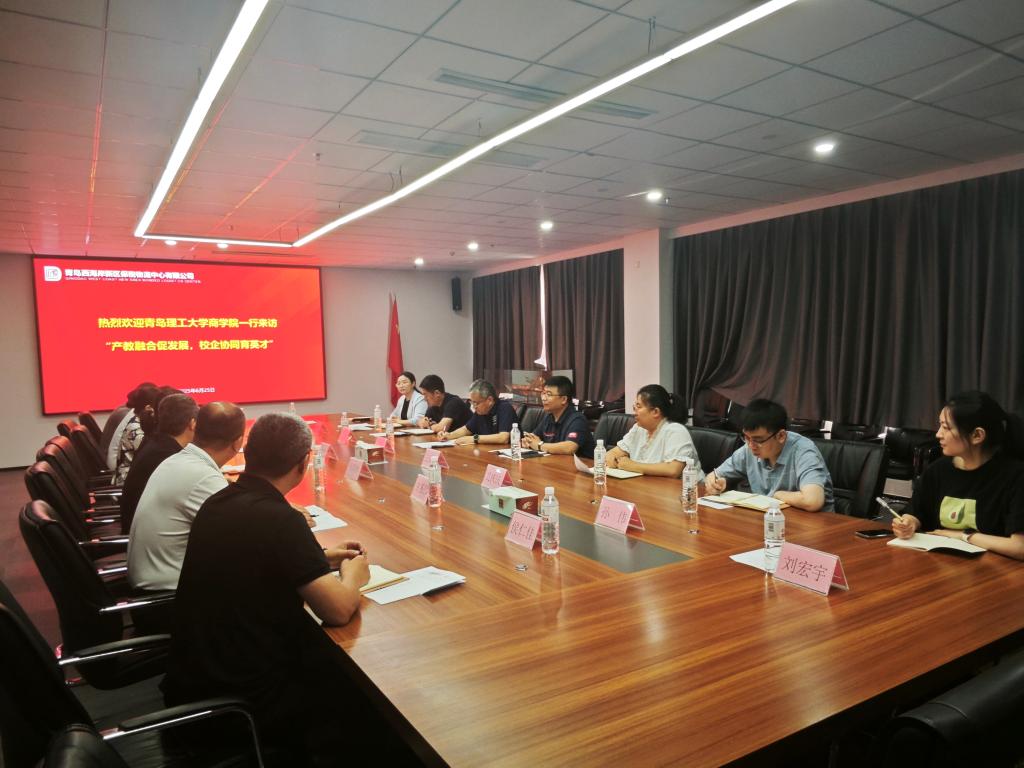 为积极响应国家关于深化产教融合、促进高校毕业生更高质量就业的号召,商学院创新人才培养模式,率先探索产教融合“就业前置”新路径。6月25日,学院党委书记肖学斌,院长云乐鑫,党委副书记、副院长马松一行8人赴青岛西海岸新区保税物流中心集团旗下的青岛跨境电商产业园,联合举办主题为“产教融合促发展,校企协同育英才”的深度对接活动。青岛西海岸新区保税物流中心总经理张钧烨,副总经理黄蕾、马丙林、徐贵元、宋丕伟,数字化创新总监黄绪伟,数字化创新中心经理侯仁佳出席座谈会。