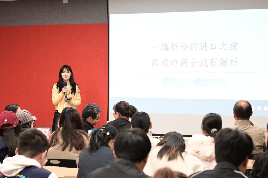 充分发挥保税物流中心跨境电商产业园在系统开发领域的优势,校企联合打造“易共创”分销实战平台。该平台使学生得以以真实分销商身份,参与选品、营销、订单处理等跨境电商全流程实战,在五大品类近200款商品取得了亮眼的营销成绩。这不仅实现了理论教学与实践操作的无缝衔接,更让学生在真实市场环境中锤炼能力、积累宝贵商业经验,提前实现从“校园人”向“职业人”的转变。在电商体验中心,学生们聚焦“前店后仓”模式,深入调研其运作逻辑与市场竞争力。通过仓库实地观摩结合现场讲解,将抽象理论在真实场景中具象化、深化理解。创新引入AI工具辅助创作,学生们分组利用AI编写视频脚本并完成拍摄,其成品将在多个平台投放,直接服务于企业市场推广,视频播放总量上万次,实现了学习成果向市场价值的即时转化。同时,表现优异的学生将获得优先录用资格,实现从“在校生”向“准员工”再到“正式员工”的平滑过渡,有效缩短就业适应期,提升就业质量与稳定性。