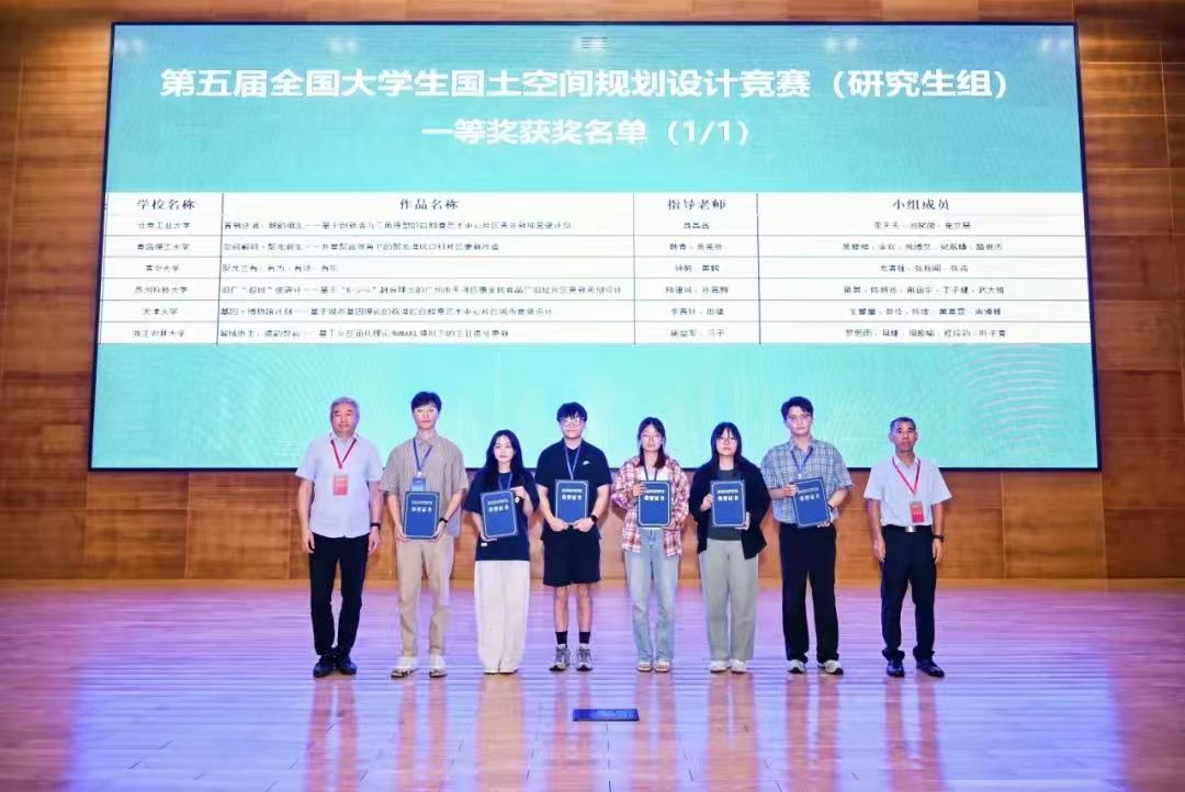 学院高度重视学生实践能力与创新精神的培养,积极对接国家战略与行业需求,持续组织学生参与高水平学科竞赛,坚持以赛促教、以赛促学。本次获奖不仅是对师生团队辛勤付出与卓越能力的充分肯定,也是学院教学改革与人才培养成效的具体体现,有效推动了国土空间规划领域的教学创新与实践融合,为学生成长成才搭建了重要平台。下一步,学院将以此为契机,加强跨学科协作与产学研联动,持续提升人才培养质量与社会贡献力。(撰稿:王文卿、吴莞姝;审核:吕楠、王中帅)