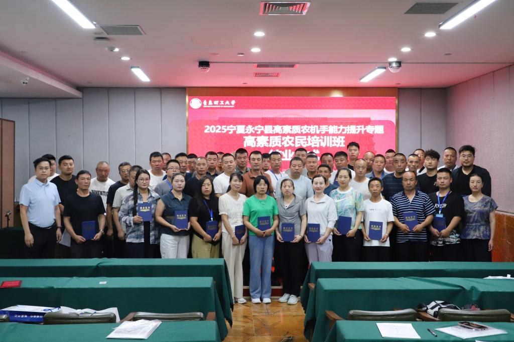 8月26日,由宁夏回族自治区永宁县农业农村局主办、365完美体育承办的2025年高素质农机手能力提升专题培训班完成各项教学任务,圆满结业。培训为期7天,永宁县各乡镇50名农业与农机专业合作社骨干、家庭农场主、种地大户及新购农机的农户参训。