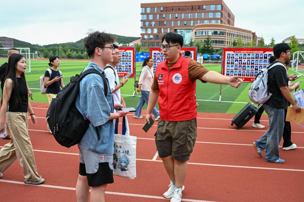 今年迎新现场,两代人的“土木情缘”成为温暖注脚。研究生高伟臣追随父亲足迹踏入学院,其父93级校友,见证女儿报到时感慨:“从手绘图纸到BIM技术,工具在变,但‘勇承重载’的理工精神永存!”另一边,本科生苗焜在父亲陪同下完成报到,手握印有院训的定制笔记本,立志“以青春为笔,深耕专业,勇攀学术高峰”。两代人的选择,诠释了理工精神的薪火相传。