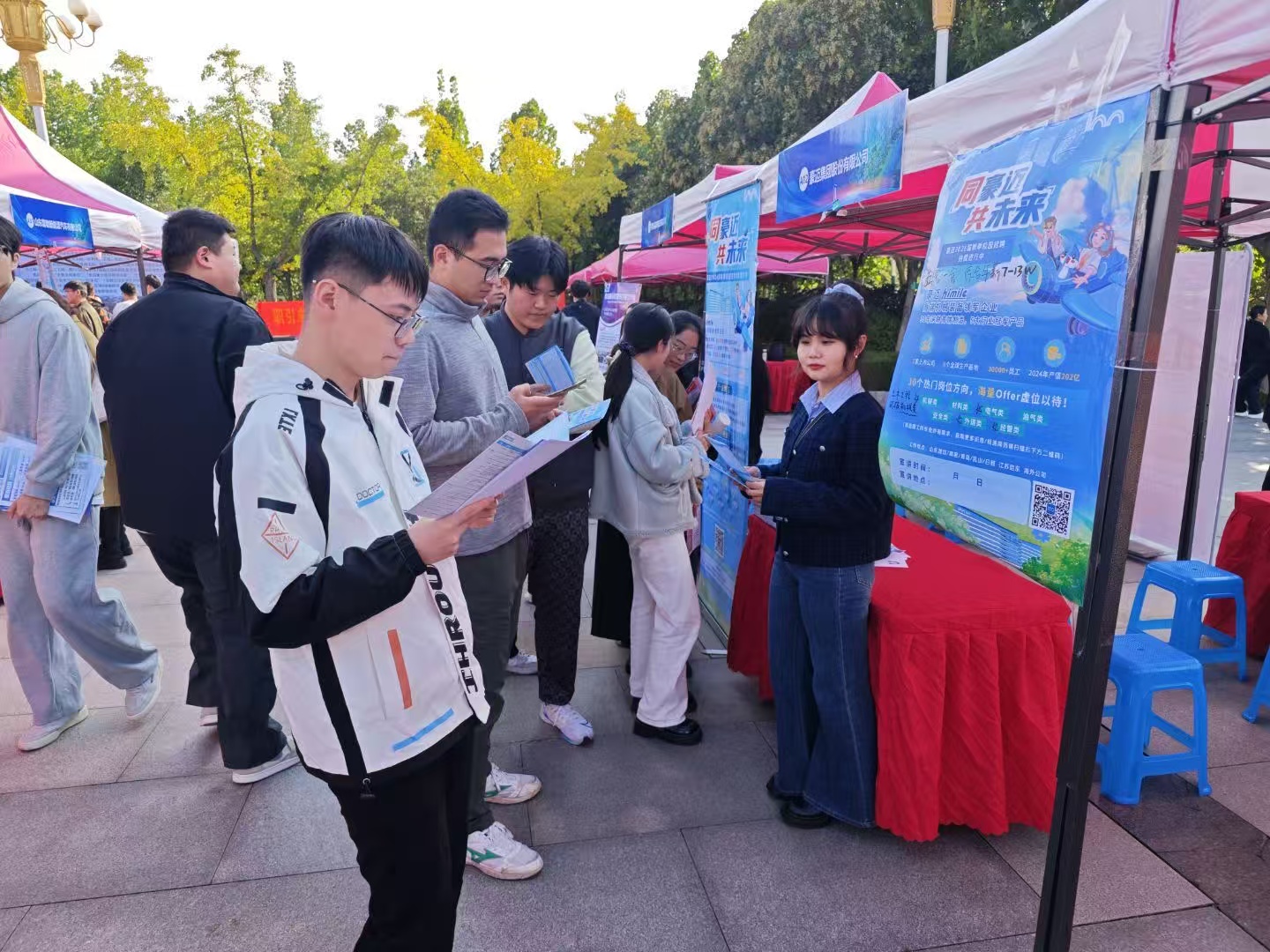 10月22日,临沂校区在图书馆广场举办“青春新赛道 ‘职’通新未来”2026届毕业生秋季校园双选会。本次双选会汇聚了京东集团股份有限公司、歌尔股份有限公司、天元建设集团有限公司、鲁南制药集团股份有限公司等154家优质企业,形成“行业龙头引领、优质民企聚力、本土企业支撑”的多元引才体系,涵盖制造、金融、信息技术、现代服务等多个重点行业,提供就业岗位1700余个,为毕业生搭建了广阔精准的求职平台。