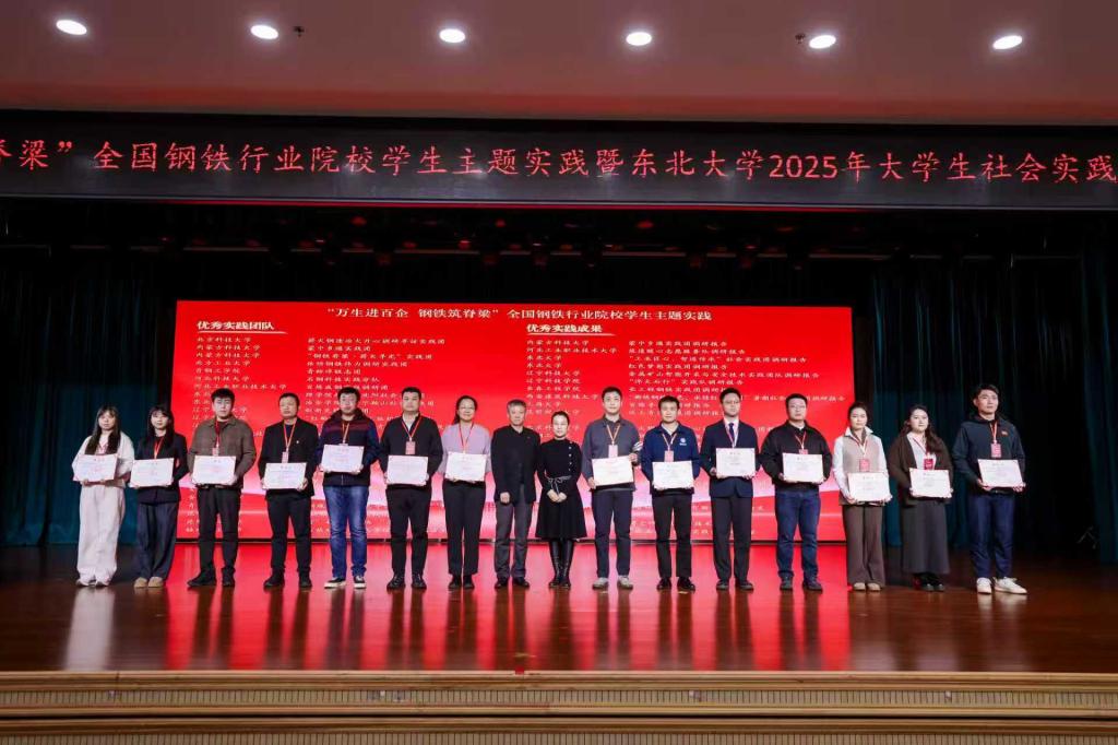本次大会由东北大学主办,旨在总结展示全国钢铁行业院校社会实践成果,并表彰先进。东北大学副校长王辉、相关部处负责人及来自北京科技大学、西安建筑科技大学、昆明理工大学等“钢筋铁骨”育人共同体高校的师生代表出席了活动。大会通过风采视频、表彰决定、颁奖仪式及优秀团队展示等环节,全面呈现了2025年度社会实践的丰硕成果。