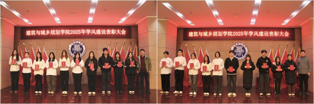 本次优良学风表彰大会既是对建筑与城乡规划学院2025年学风建设成果的集中展示和对先进典型的隆重褒奖,也是对学院全体师生的有力动员。全院师生将以此次表彰大会为新的起点,凝心聚力,携手共进,持续深化学风建设,推动学院人才培养质量和学科发展再上新台阶,为学校建设国内一流应用研究型理工大学贡献力量。(撰稿:朱华建;审核:吕楠、王中帅)