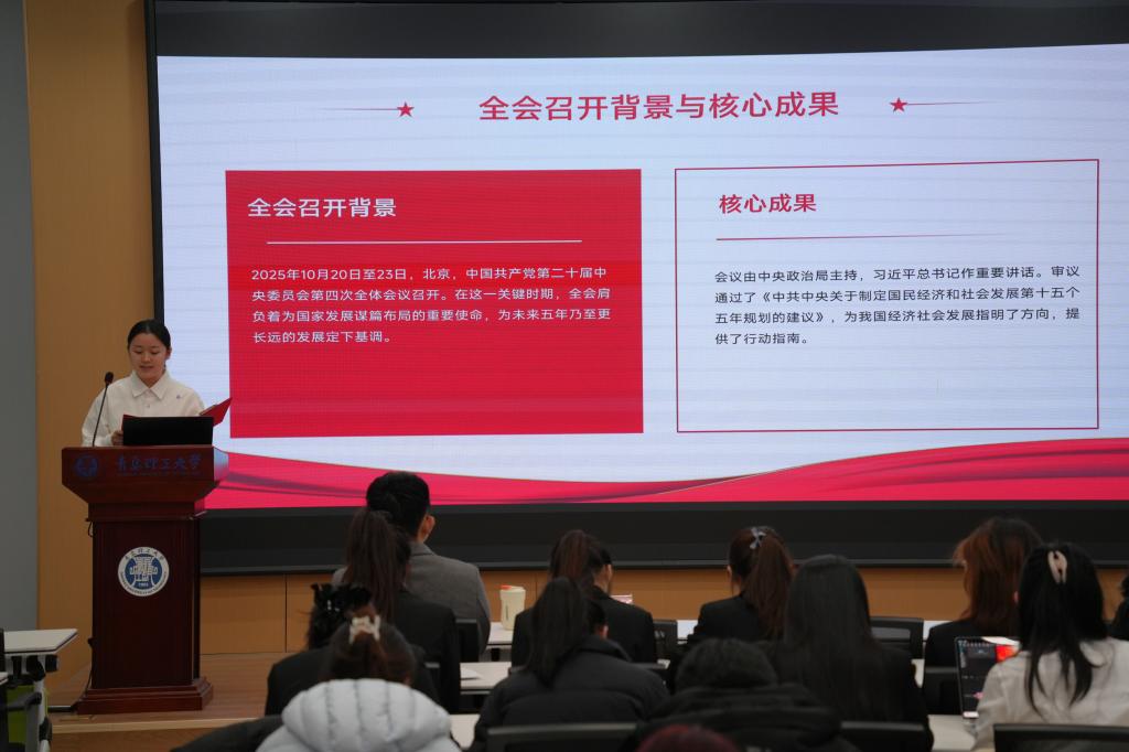 各选手紧扣“先锋领航”主题,立足履职实践,生动阐释自身及所在团支部在思想引领、基础团务、科技创新等方面的探索实效,展示新时代班级团支书的政治担当与先锋形象。比赛结束后,山东高校青年师生巡讲团成员信息与控制工程学院宋佳宸同学围绕学习贯彻党的二十届四中全会精神进行了理论宣讲。