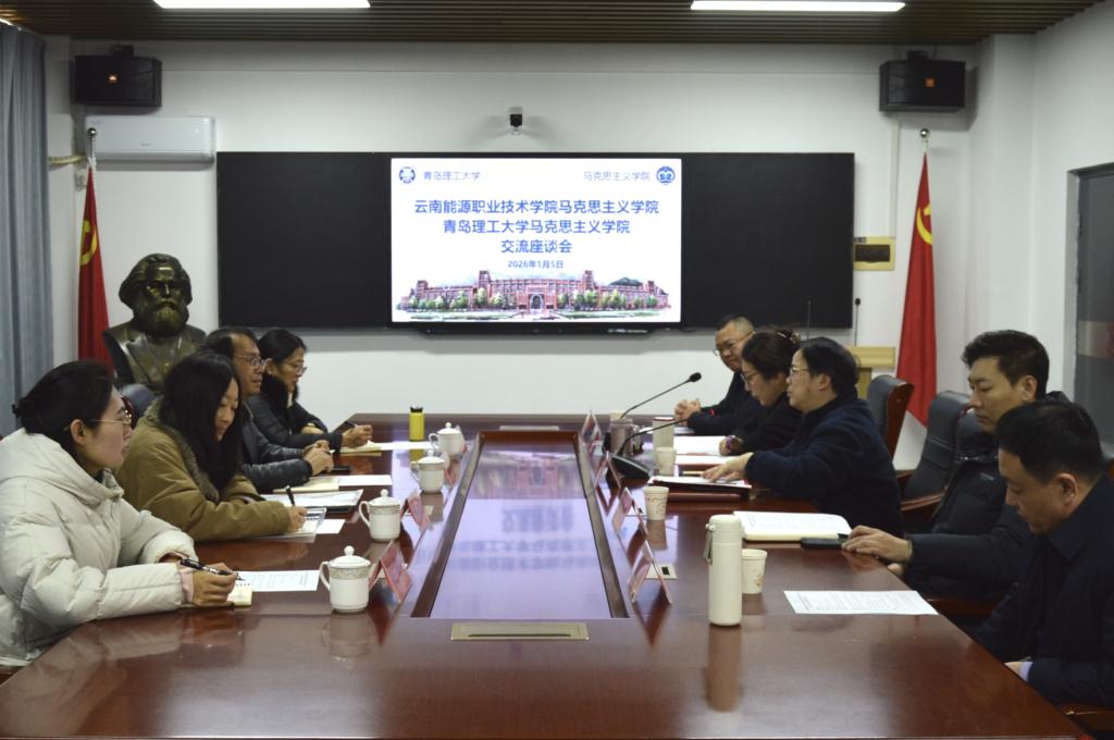 1月5日,云南能源职业技术学院马克思主义学院党总支书记、院长邓祖波一行4人到马克思主义学院开展合作交流。马克思主义学院院长华章琳,及相关负责人参会。会议由学院党委副书记、副院长石峰主持。