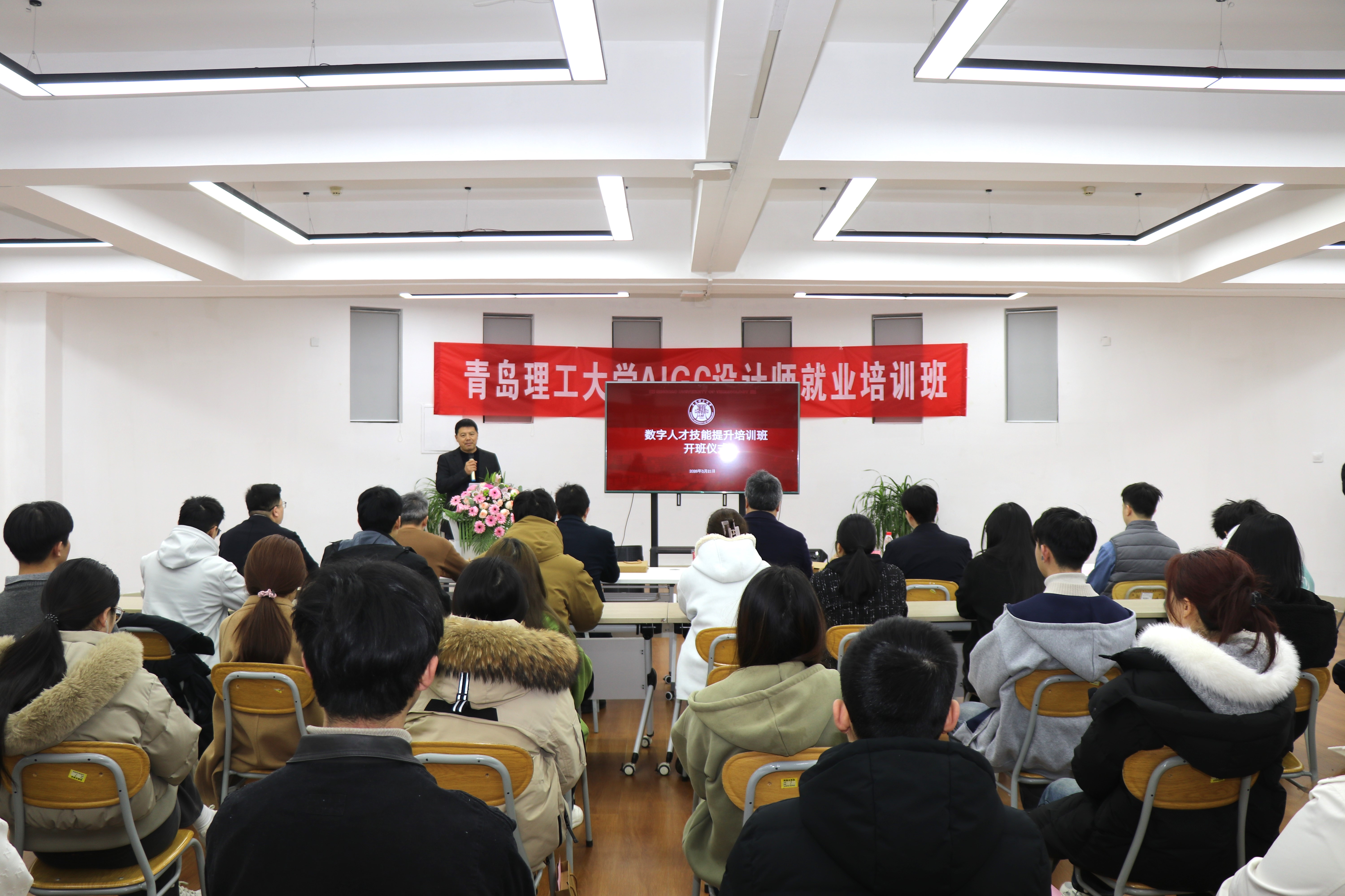 为积极响应国家数字经济发展战略,深化产教融合,培养适应新时代需求的复合型数字人才,3月21日,由建筑与城乡规划学院主办的“数字人才技能提升培训班”开班仪式在市北校区举行。党委常委、副校长苗吉军,教务处副处长、创新创业学院副院长张立伟,建筑与城乡规划学院副院长(主持工作)解旭东、副院长耿雪川,企业方代表及首期培训班全体学员共50余人参加仪式。仪式由未来城市研究院副院长(项目校方负责人)裴根主持。