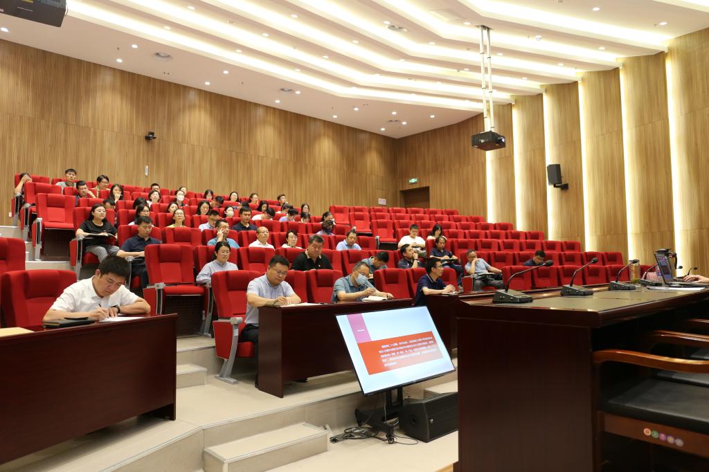 6月21日,根据学校主题教育工作安排,党委常委、组织部部长郭建锋以《推动主题教育走深走实 凝聚学校内涵式高质量发展强大动力》为题,作学习贯彻习近平新时代中国特色社会主义思想主题教育专题党课。党政办公室、组织部、学生工作处、团委、创新创业学院、信息化建设与管理处、商学院、艺术与设计学院党员干部听取了党课。