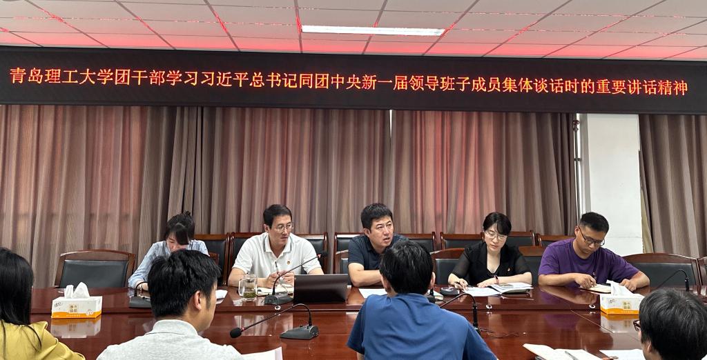 6月27日上午,365完美体育共青团干部在西海岸新区主校区现代教育中心212会议室召开专题会议,学习习近平总书记在同团中央新一届领导班子成员集体谈话时的重要讲话精神。校院两级专职团干部、学生兼职团干部代表参加。会议由学校团委书记苏伟主持。