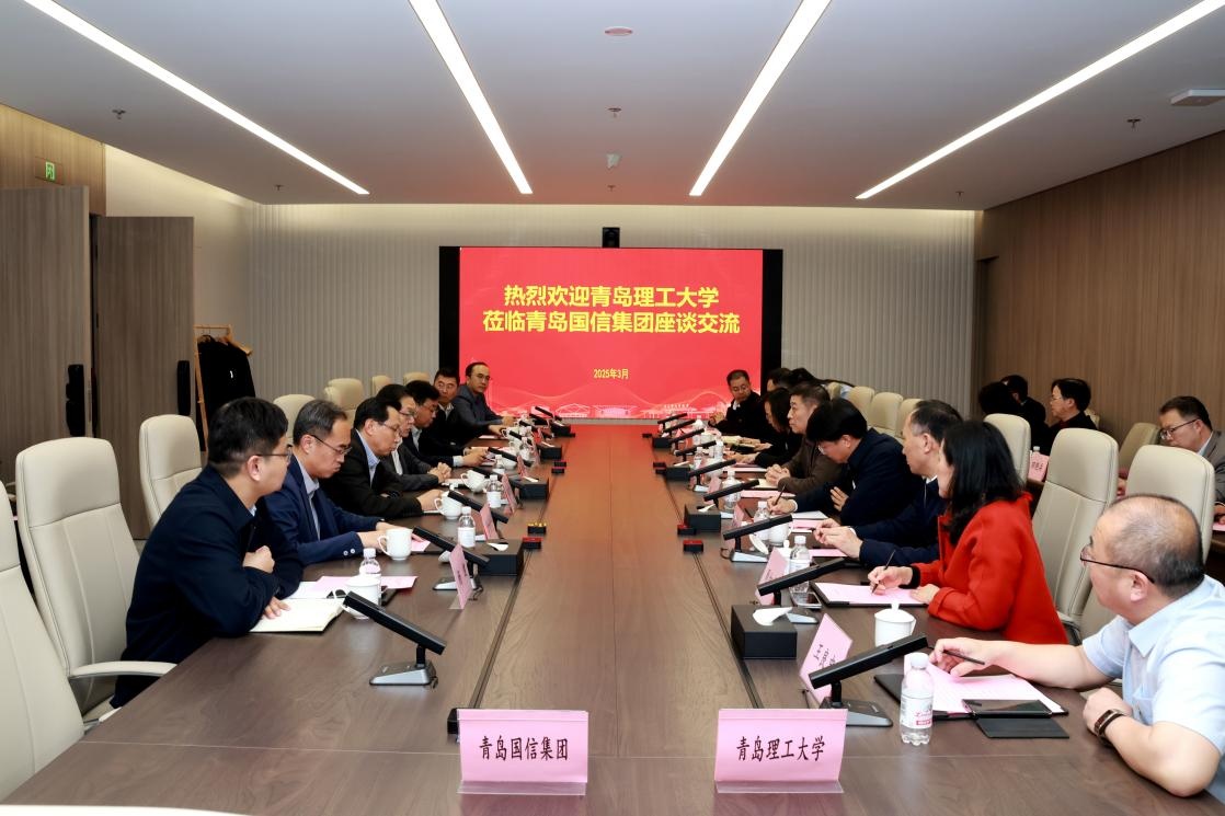 为深入学习贯彻习近平总书记在全国两会期间的重要讲话精神和全国两会精神,统筹推进教育科技人才产业一体化发展,在教育强国、科技强国、人才强国建设中更好发挥青岛理工作用,3月28日下午,学校党委理论学习中心组(扩大)理论结合实践,赴青岛国信发展(集团)有限责任公司(以下简称“青岛国信集团”)开展体验式学习和座谈交流。青岛国信集团党委书记、董事长、青岛海洋集团党委书记刘鲁强,党委副书记、董事、青岛海洋集团董事长邓友成,学校党委书记杨赟,党委副书记、校长张凯等出席座谈会,学校党委理论学习中心组全体成员、部分部门和学院负责人参加体验学习。