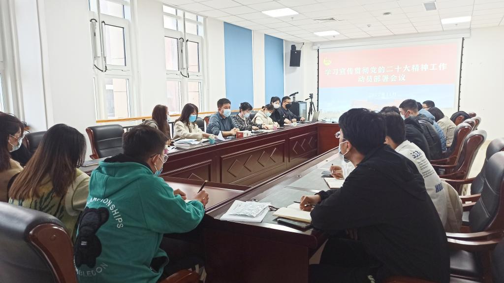 团委副书记李晓霞在会上解读了《关于组织青年学生认真学习宣传贯彻党的二十大精神的工作方案》,对相关工作安排进行了说明。