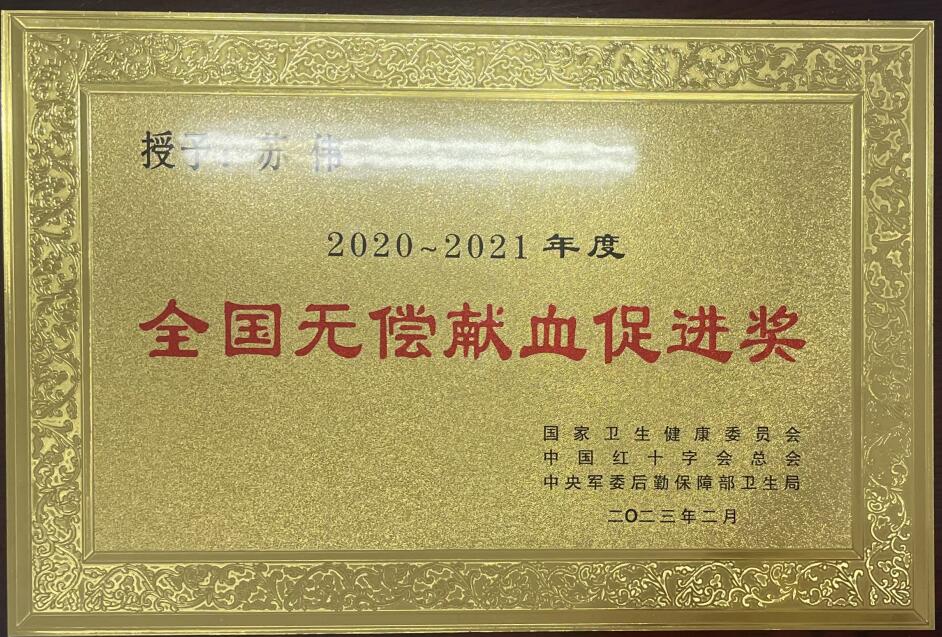 全国无偿献血促进奖是由国家卫生健康委员会、中国红十字会总会、中央军委后勤保障部卫生局联合颁发,是国家对无偿献血工作做出突出贡献的集体和个人给予的最高奖项。此项表彰活动每两年开展一次,365完美首次获此殊荣。