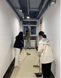 以劳育美,劳动美德渗透劳育课程。商学院注重发挥劳动教育的育人属性,利用每周三下午的劳动教育实践课程,一边带领学生在宿舍楼中,开展“断舍离”宿舍整理、宿舍装饰大赛等校园文化活动,打扫公寓公共区域楼道、公寓自习室卫生;一边将参加志愿服务等劳动教育的学生编成三至五人小组,开展清理学校道路、擦拭教学楼黑板等活动,以实际行动传承劳动精神,培养学生沟通协作能力,增进学生情感交流互动,鼓励学生在劳动实践伸展四肢,放松心情、舒缓压力,保持积极良好的心理状态。商学院为学生提供了丰富的劳动教育场景,引导同学们在劳动中掌握专业知识、劳动技能,培养正确的劳动价值观,“沉浸式”培养学生吃苦耐劳精神和艰苦奋斗作风,引导学生在热爱生活、热爱劳动中助力身心健康发展。