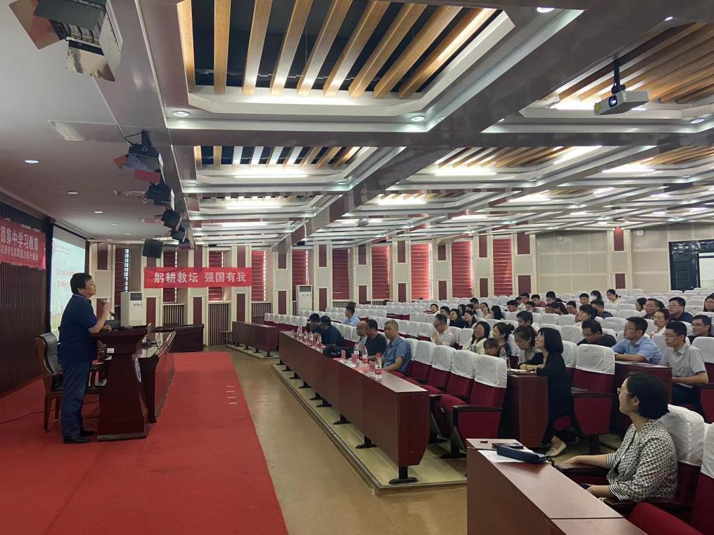 学院党委书记高洁作《躬耕教坛强国有我》师德集中学习教育专题党课,带领广大教师集中学习习近平总书记在中央政治局第五次集体学习时的重要讲话精神,重温习近平总书记在与北京师范大学师生代表座谈时的讲话,结合《新时代高校教师职业行为十项准则》等有关制度文件介绍学校和学院师德考核工作开展情况,对青年教师成长与发展进行了针对性指导。