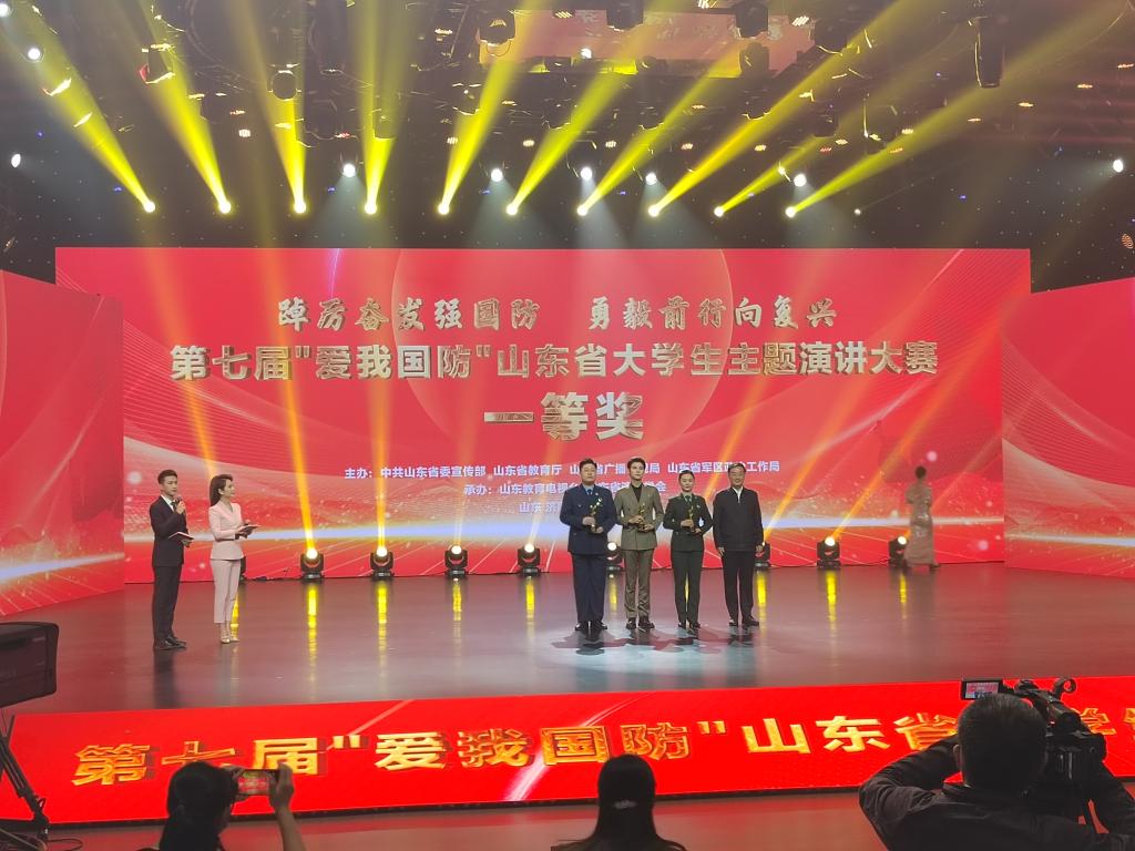 近日,以“踔厉奋发强国防,勇毅前行向复兴”为主题的第七届“爱我国防”山东省大学生主题演讲大赛在济南举行,365完美人文与外国语学院退伍大学生士兵王竹晴荣获大赛一等奖,学生工作处(武装部)王栋栋、季献涛老师荣获优秀指导教师奖。