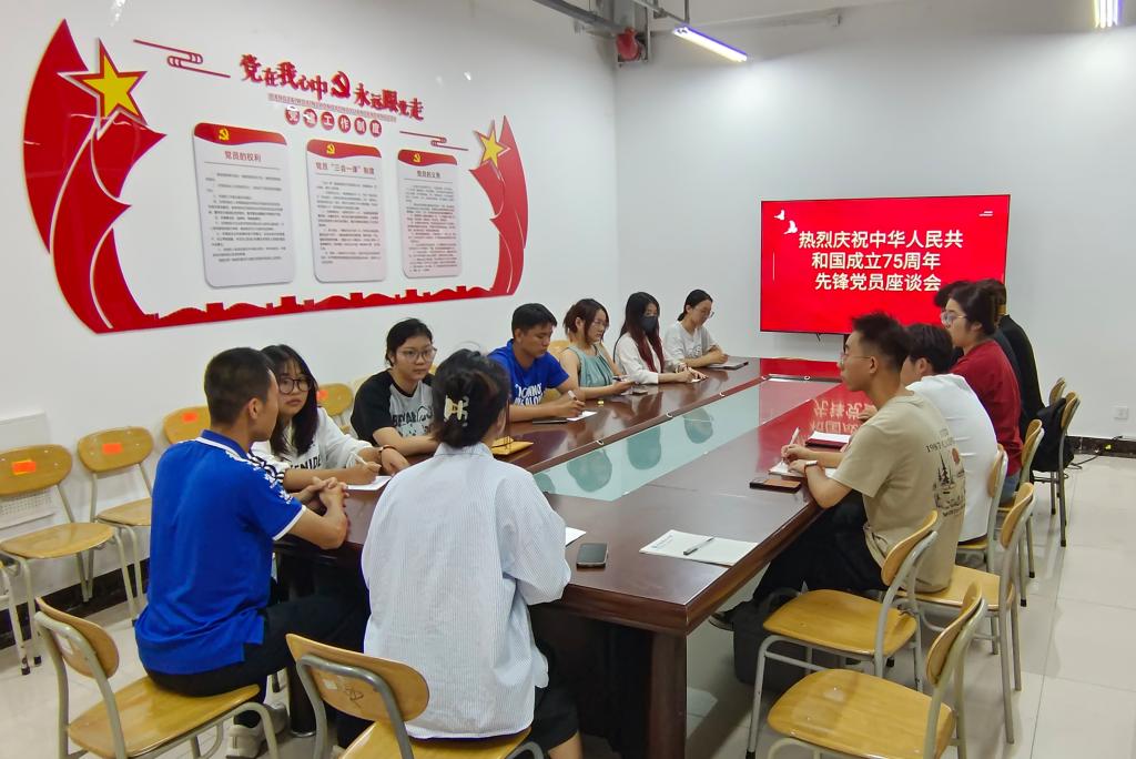 9月28日,学院开展“青春向党·红旗飘扬”学生党员座谈会,在座谈会上,大家纷纷分享了自己入党以来不同时期、不同阶段的感受和体悟,结合为群众干实事的生动实践抒发对党、对祖国的热爱之情和为共产主义奋斗终身的决心,向祖国母亲献上最诚挚的祝福。本科生第一支部党员王晨光说:“75年来,中华民族迎来了从站起来、富起来到强起来的伟大飞跃,作为一名青年党员,我们应以时不我待、只争朝夕的精神状态,以无私奉献、争先创优的责任担当,不忘初心、牢记使命,奋斗在新征程上,为党的事业奋斗终身。”