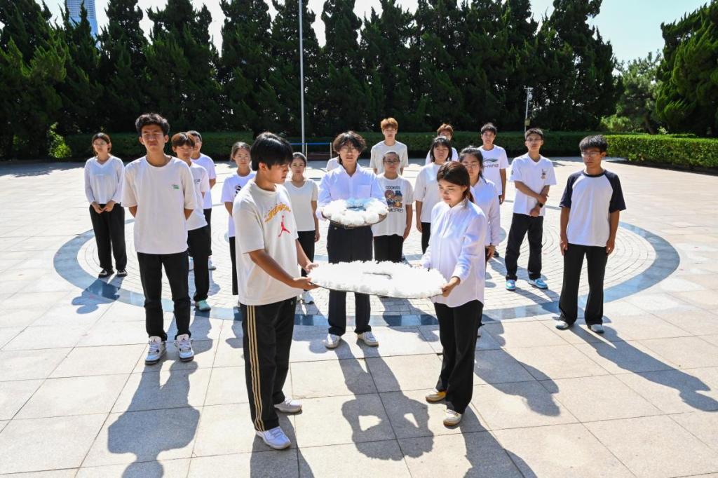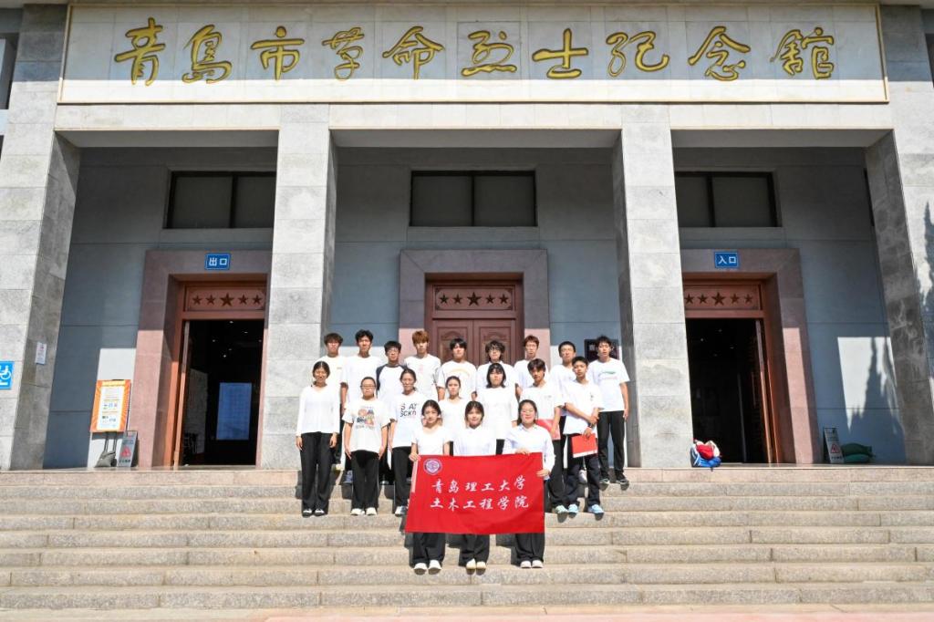 学院思源社成员在活动室共同制作手工花圈,同学们怀着崇敬的心情,精心挑选材料,仔细剪裁、编织,承载着对英雄烈士的无限哀思和敬意。同学们来到青岛市革命烈士纪念馆,并将制作好的花圈敬献在烈士墓碑前,以表达对英雄烈士的深切缅怀和追思。在纪念馆内,同学们阅览先辈们光荣事迹,在历史的回响中思考,在静默无言中聆听振聋发聩的时代强音。中美土木233班李晗说:“我不禁想起共和国勋章获得者黄宗德爷爷在颁授仪式上所说的话。作为新时代青年,我们应该继承和发扬革命先烈的精神,努力学习专业知识,将来为国家建设贡献自己的力量。”