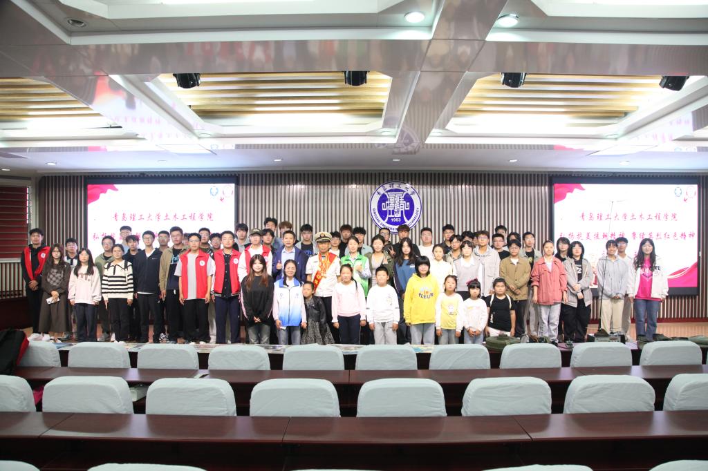 为弘扬伟大的抗美援朝精神,汇聚民族复兴力量,中国人民志愿军抗美援朝出国作战75周年纪念日来临之际,土木工程学院联手青岛绿意公益组织,邀请全国劳模王炳交为学院青马学员和西海岸新区隐珠街道的小学生做“弘扬抗美援朝精神 赓续英烈红色血脉”专题报告,学院学工办主任、团委书记王俊富,绿益公益组织刘慧玲,以及大中小学生参加本次活动。