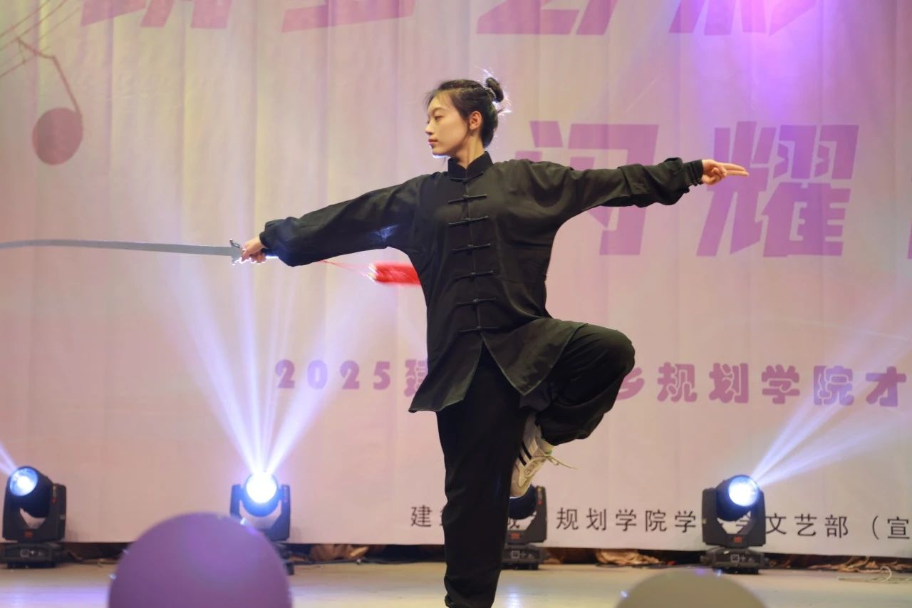 为传承五四精神、勇担时代使命,学院在市北校区礼堂举办五四文艺晚会。晚会以“筑梦艺彩,闪耀青春”为主题,融合歌舞、武术、民乐等多元艺术形式,展现青年学子的青春风采与爱国情怀。歌曲表演中,抒情曲目传递对梦想的执着,动感演唱彰显青春朝气,是坚定理想信念的生动诠释;舞蹈节目各具特色,《月下竹林》柔美而又坚韧,武术表演《梅花剑》刚劲有力,恰似当代青年“心有锦缎而步履铿锵”的特质,艺术化呈现五四精神“破土而出向上生长”生命力,将五四精神通过艺术表达焕发出穿透时空的永恒魅力。