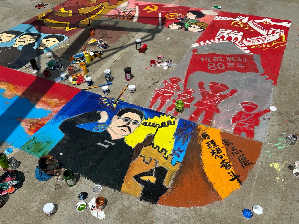 4月29日,学院以班级为单位进行“传承五四精神,赓续红色血脉”五四大地绘画活动,同学们分组合作进行创作,每班完成部分既独立成画又无缝衔接,将五四人物、航天逐梦、乡村振兴等时代图景融入笔端,用绚丽的色彩、细致的笔触共绘“青春中国”的壮美画卷。