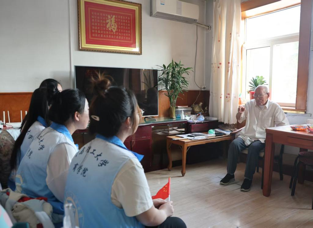 为深化历史认知,让抗战记忆更加鲜活生动,学院“繁星璀璨·红梦引航”实践团队开展“口述历史·薪火相传”活动。志愿者们怀着崇敬之心寻访了在青的抗战老兵李佩琴,老人抗日战争期间曾在山东滕县、曲阜等地战斗,解放战争期间参加过鲁南战役、孟良崮战役、淮海战役,中华人民共和国成立后还参加了剿匪斗争。通过聆听亲历者后代的深情讲述,记录珍贵的口述史料,学生们得以触摸到更为真实、感人的抗战历史细节,不仅上了一堂生动的历史课,更深刻理解了先辈的牺牲与奉献精神。