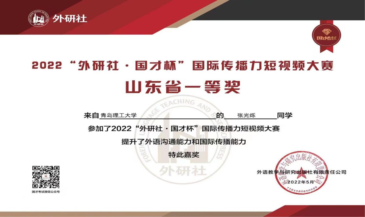 近日,“外研社·国才杯”国际传播力短视频大赛省赛结束。土木学子积极参与,获得省一等奖2项,省二等奖2项,省三等奖3项。