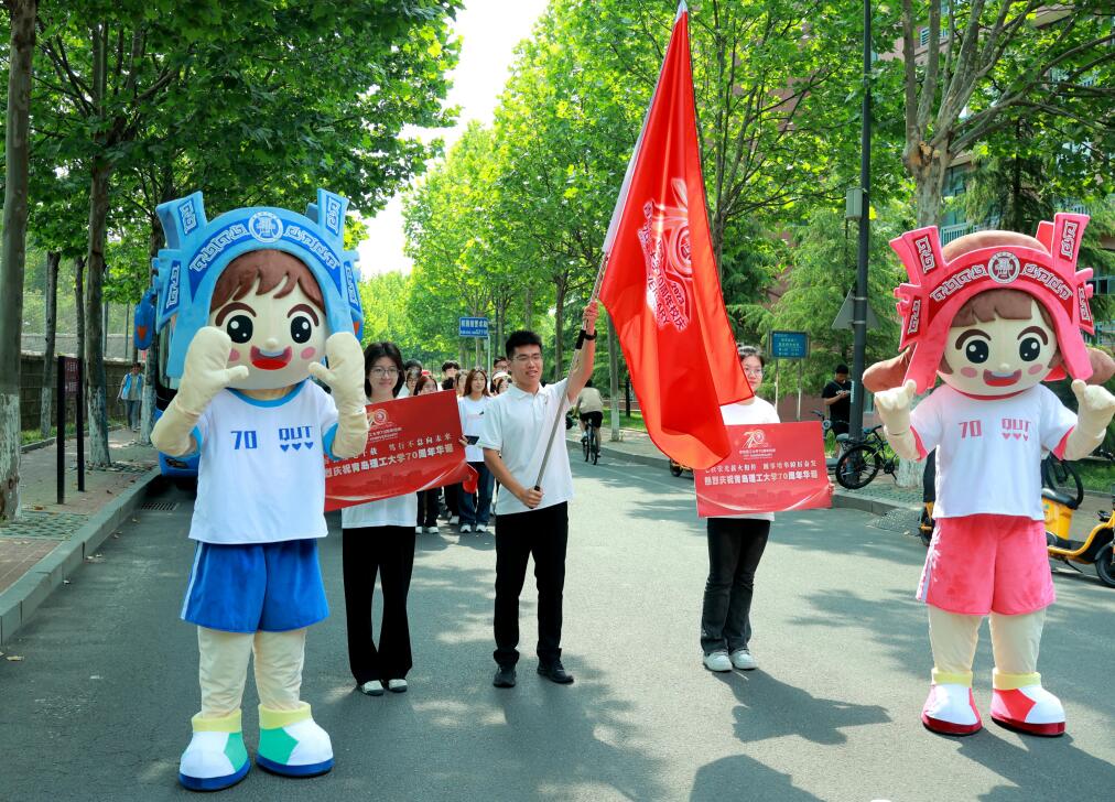 踔厉奋发七十载,笃行不怠向未来。为庆祝学校建校70周年,弘扬优良传统,抒发师生爱校情怀,6月16日,学校近千名师生代表参加了“70年70站”校庆旗校内传递接力跑活动。活动在西海岸新区主校区、市北校区和临沂校区同步开展。