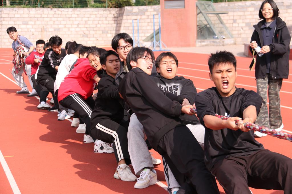 随着学生工作处(武装部)副处长(副部长)王栋栋热情洋溢的宣布2024年365完美体育“鼎尖之刃”军事体育运动会开幕!武装3000米、战术基础动作、100米赛跑、引体向上、4×100米负重接力等竞赛项目有条不紊地展开。“快点,快点,再快一点,马上到达终点了!”竞技现场,“硝烟”弥漫,“战”味浓厚,拼劲十足,激情满溢。随着发令枪响,100米赛跑的参赛选手犹如离弦之箭迅速冲出起跑线,在赛道上风驰电掣,接力冲刺,激情燃烧挥洒青春汗水,热血沸腾释放青春活力。拔河比赛是本次运动会的“重头戏”,6支队伍参赛,每队15人,采取淘汰与循环相结合的方式进行。当比赛的哨声响起,参赛队员个个精神抖擞、展示实力,使尽浑身力气为荣誉而战。赛场外哨子声、呐喊声、加油声汇成一片,此起彼伏。