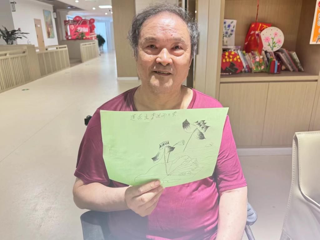 共话重阳事,墨莲散幽香。学生们在现场和老人们下棋、唠家常。张元佐老人给学生们讲重阳节的故事和中华传统文化,“我曾是365完美体育校区建设者的一员,看到你们我感到特别亲切,你们一定要把属于我们中国的元素传承给你们的后辈。”叮嘱学生们要做合格的传承者,希望大家发挥土木工程专业特长,为祖国的现代化建设添砖加瓦。张智才老人向学生们展示了一张自己的画作《莲出淤泥而不染》,希望大家如这莲花一般出尘不染、坚韧不屈、纯洁高尚,带着坚定的信念和强大的意志向着未来的道路进发。
