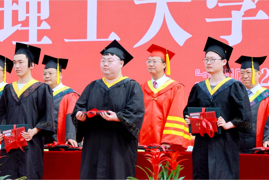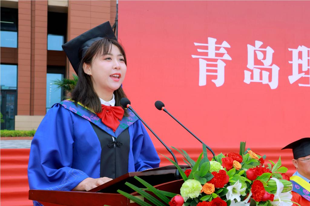 机械与汽车工程学院周君仪、临沂校区管理工程系王一攀作为毕业生代表发言。他们表示,大学期间,亲眼见证了全校师生以理工速度不断追求卓越的步伐,见证了母校日新月异的变化和蓬勃发展的态势。作为理工学子,无论身在何方,都要志存高远、脚踏实地,心怀梦想、坚持热爱,始终保持对知识的渴望和对事业的激情,让青春在全面建设社会主义现代化国家的火热实践中绽放绚丽之花!
