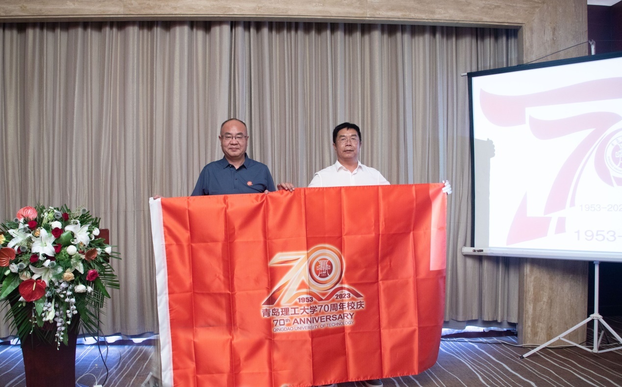 会上还举行了学校70周年校庆“70人70站”校庆旗传递(安徽站)的授旗仪式。