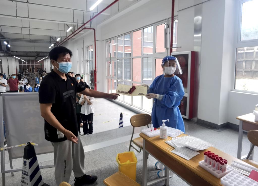 “在防控一线,收到来自党组织的祝福和政治生日贺卡,真是太暖心了,感谢组织的关爱和培养。”后勤党总支校医院党支部已有15年党龄的赵雷同志一直坚守在核酸检测一线的党员先锋岗上,党支部书记姜法显同志前往核酸检测现场,在现场百余名师生的掌声中,为她送上了政治生日贺卡。