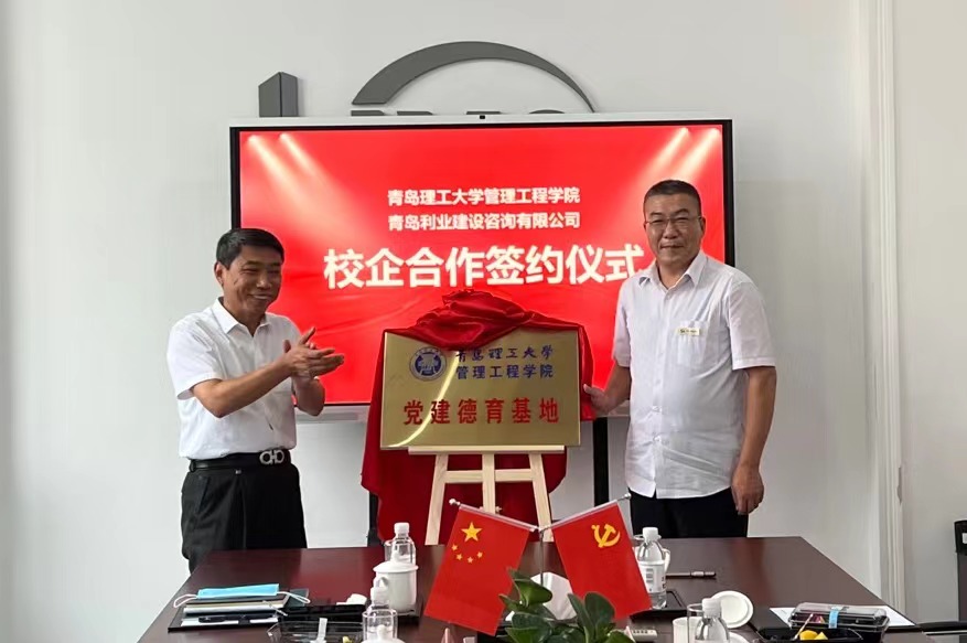 管理工程学院党委与青岛利业建设咨询有限公司合作共建,以校企合作为纽带,搭建党建共建平台、大学生就业创业平台,促进理论学习与实践创新相结合,强化党建引领水平。
