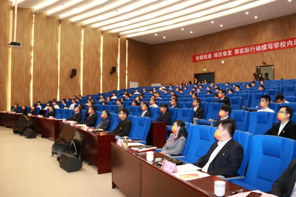 会前,全体师生共同观看了庆祝中国共产主义青年团成立100周年宣传片《共青春》及主题曲MV《有我》。与会师生被视频展示的一代代不负时代重任的中国青年人的模样所感动,更加明晰了坚定不移听党话,跟党走的心声,增强了为党和人民奋斗的信心和决心。