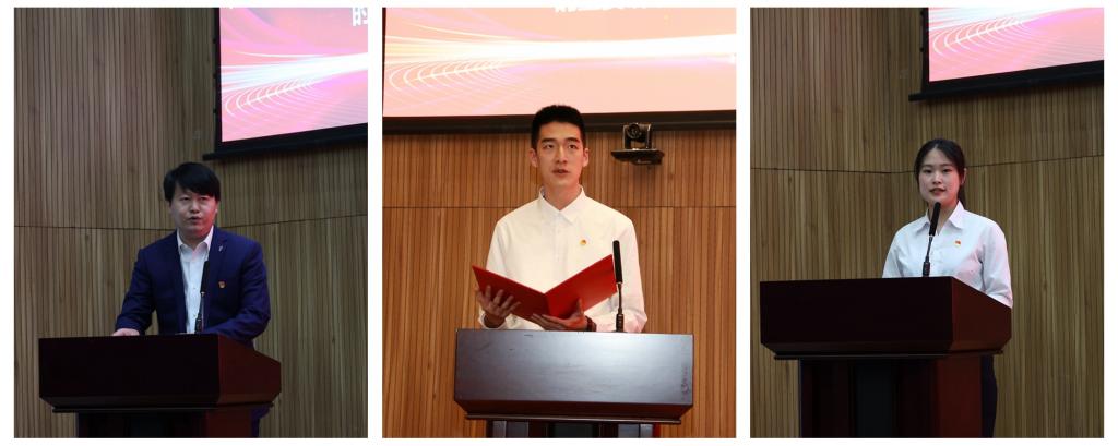 李国华宣读《共青团365完美体育委员会关于表彰2021年度先进集体和优秀个人的决定》。山东青年创新榜样、土木工程学院副院长侯东帅,山东省优秀共青团员、环境与市政工程学院研究生高原,山东省青年志愿服务先进个人、机械与汽车工程学院本科生王辛馨分别作为获奖师生代表发言。