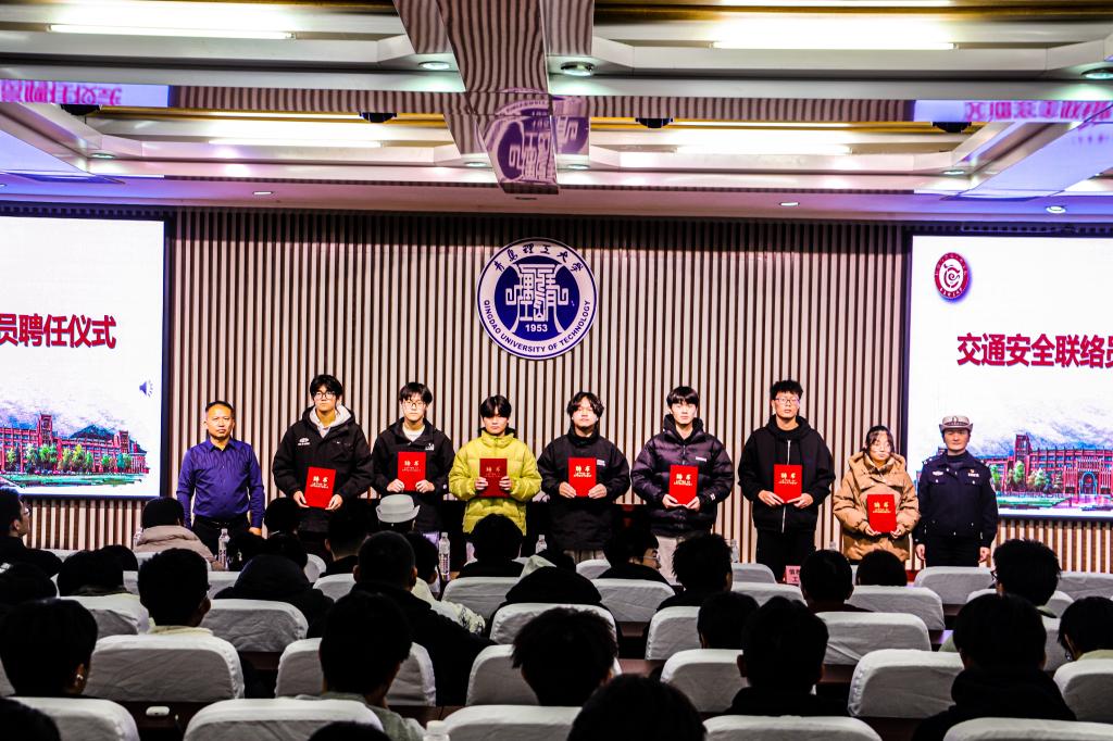 王丽、申维东为学院交通安全联络员颁发聘任证书。学院聘请各班级生活委员作为交通安全联络员,旨在通过宣传教育、日常管理、信息反馈等方式,更好地发挥朋辈互助作用,共同守护大学交通安全和其他各类安全。