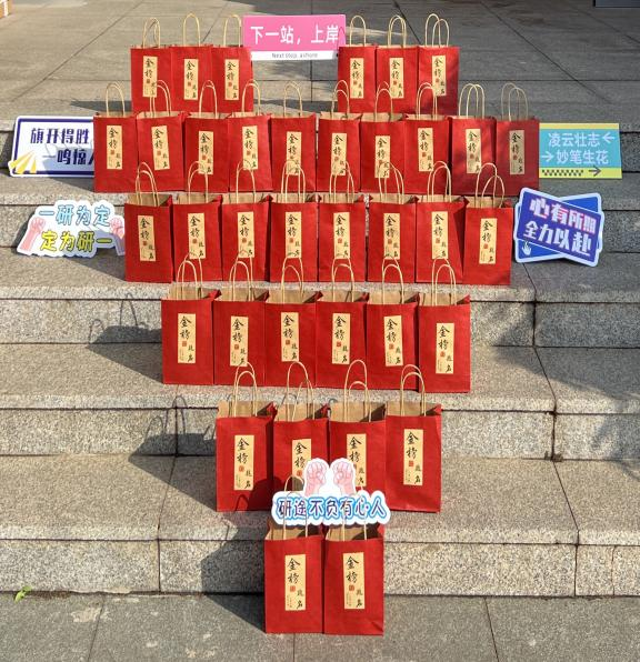 活动中,学院领导细心叮嘱考研学子,注意劳逸结合,合理安排时间,同时鼓励同学们全力以赴、稳定心态,争取一战成硕。“这份‘加油包’实在是太暖心了,让我感受到了学院的关怀和温暖,自己会以更加积极的状态备考。”收到“加油包”的考研学子崔铭翰激动地说。