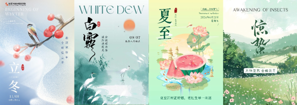 为增强学生对传统文化的了解和认同感,提高学生的创造力和艺术表达力,11月5日,学院以二十四节气中的“立冬”为契机,举办“二十四节气海报设计大赛”活动。同学们围绕二十四节气,将农谚、剪纸等元素穿插其中,画面虚实结合,充分展现了中华优秀传统文化的无限魅力,尽显海报设计艺术之美,也进一步培养了学生们的设计技艺和美学素养。