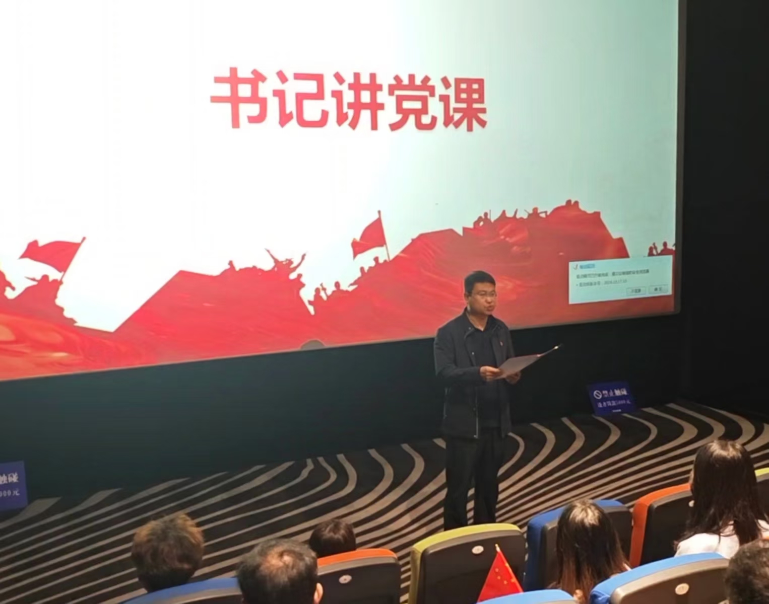 师生以银幕为课板,结合爱国主义影片,从“思想引领”“本领练就”“人民至上”三个方面展开学习。焦红良向师生党员指出,“站在新的历史起点上,希望党员同志继续把坚定理想信念作为高高飘扬的光辉旗帜,信一辈子、守一辈子,自觉传承家国天下的深厚情怀,为全面建设社会主义现代化国家、全面推进中华民族伟大复兴贡献青春力量。”在场师生备受鼓舞,表示今后将用实际行动践行“请党放心,强国有我”的青春誓言。