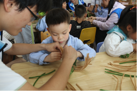 院社联动,童心同舟暖心行。6月5日,学院师生一行20余人前往京华合木幼儿园,为小朋友们送上一场寓教于乐的文化活动,通过讲述生动的端午由来与习俗课、编龙舟、赛龙舟,让小朋友们在欢乐中了解端午节,感受端午节深厚的文化内涵,激发他们的爱国情怀。计算211班褚娜利用视频、图片等方式向小朋友们娓娓道来端午节的起源与习俗,诵读经典,引领他们感受传统文化的韵味。随后,志愿者们详细地讲解如何用扭扭棒制作龙舟,并进行演示。在志愿者们的指导下,孩子们用扭扭棒巧妙编织出小龙舟,欢声笑语中,传统文化的种子在孩子们心中生根发芽。